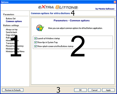 Select “Options” in eXtra Buttons menu in System Tray to see this window.